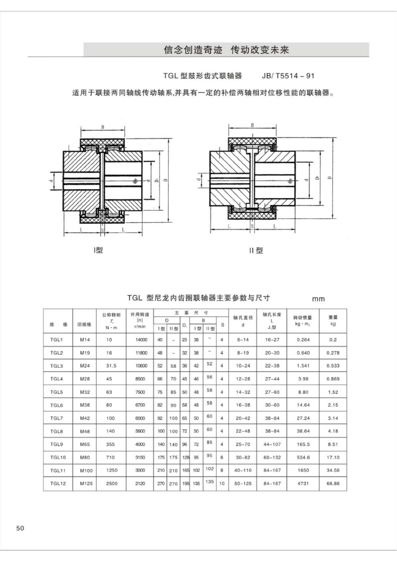 當前位置: 首頁(yè) - 產(chǎn)品指南 - 鼓形齒式聯(lián)軸器 - TGL型尼龍套鼓形齒式聯(lián)軸器